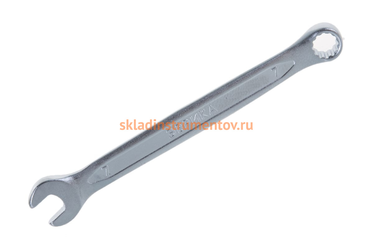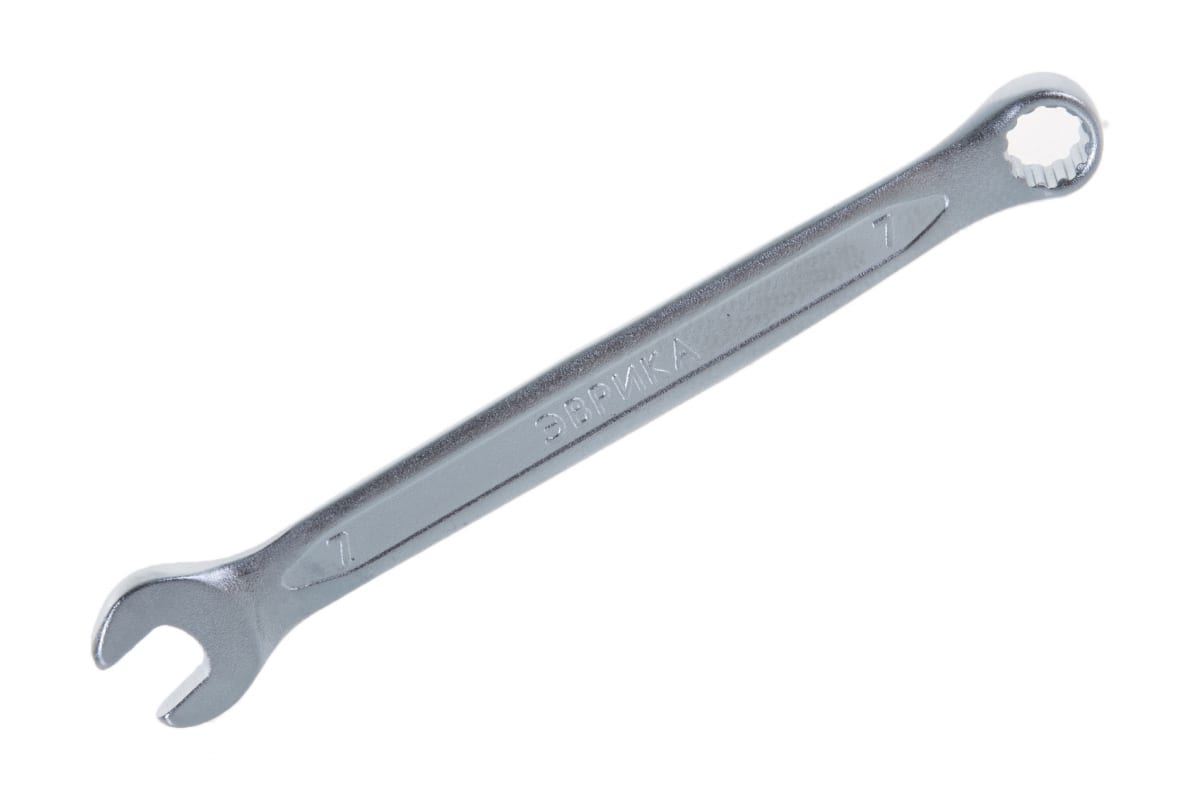Комбинированный ключ 7мм Chrome vanadium на держателе ЭВРИКА ER-53071 позволяет работать с крепежом с торца или сбоку.