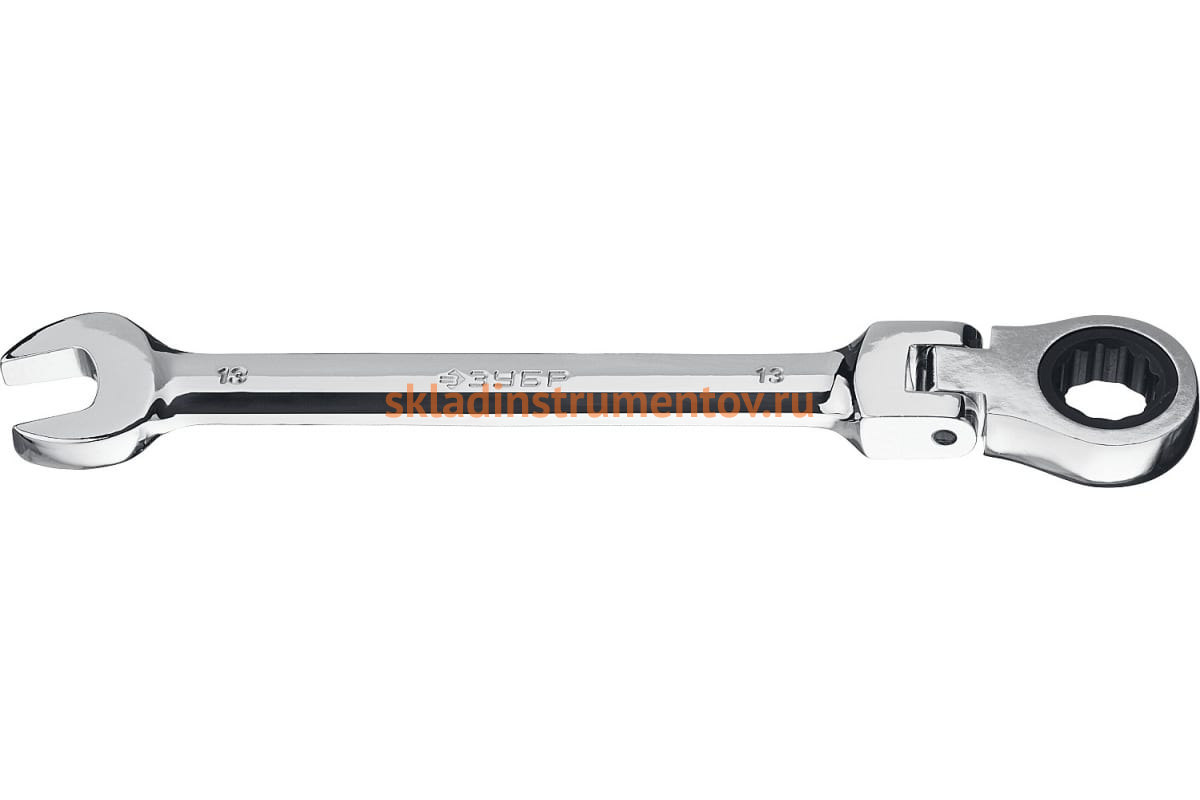 Комбинированный гаечный ключ трещоточный шарнирный Зубр ПРОФ 27101-13 подойдет для работы с различными видами шестигранного крепежа.