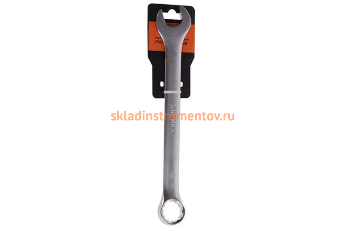 Комбинированный ключ 32мм Chrome vanadium на держателе сатинированный ЭВРИКА ER-31032 позволяет работать с крепежом с торца или сбоку.