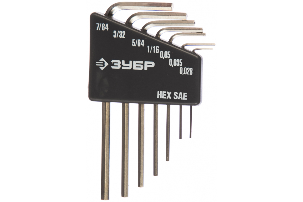 —Набор ключей имбусовых Зубр "Эксперт" Мини для точных работ Cr-V HEX SAE 0,028" 0,035" 0,05" 1/16" 5/64" 3/32" 7/64" 7 шт. 27475-H7—
