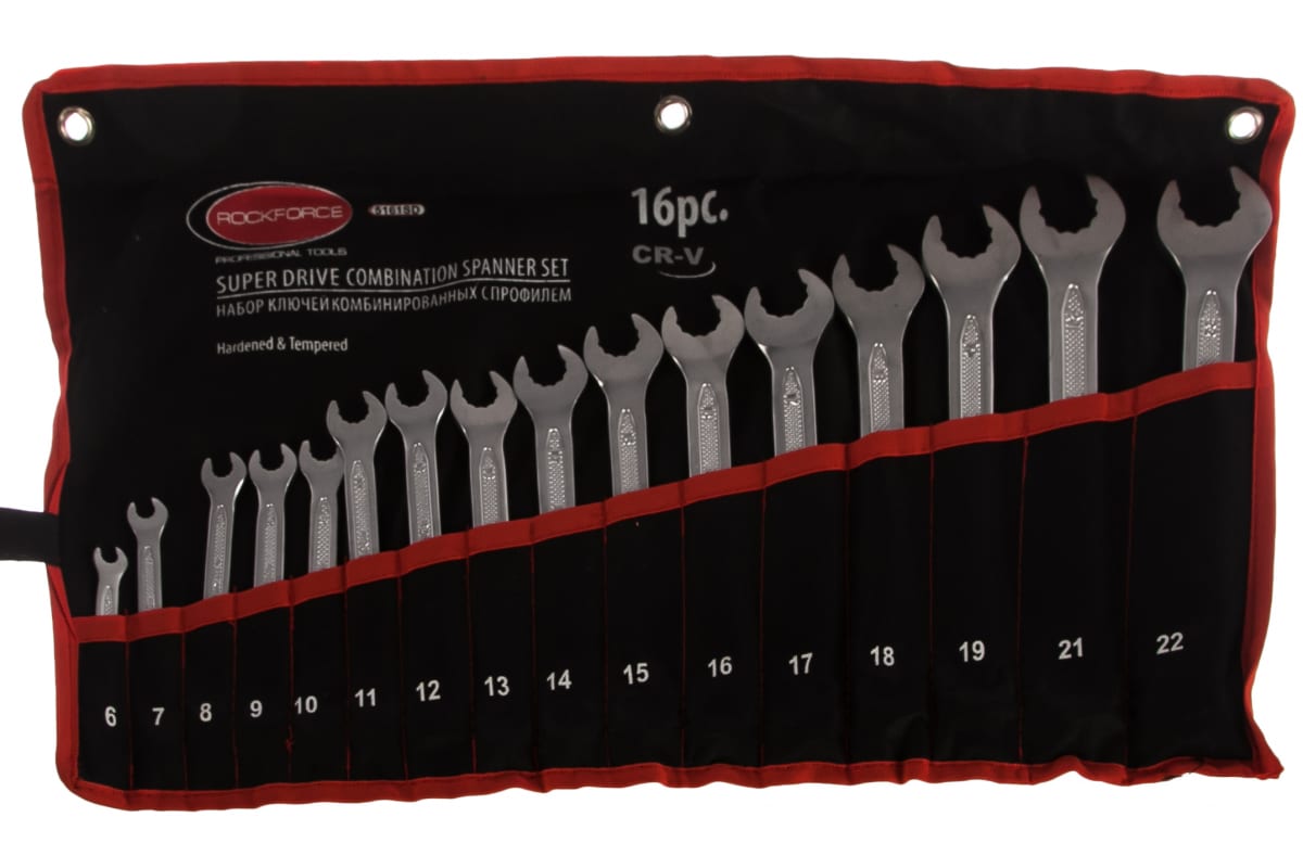 Набор ключей комбинированных с профилем ROCKFORCE Super Drive 16 предметов RF-5161SD представляет собой комплект инструмента высокой прочности. Для работы с крепежом можно прикладывать значительные усилия.
