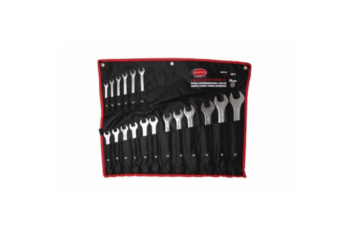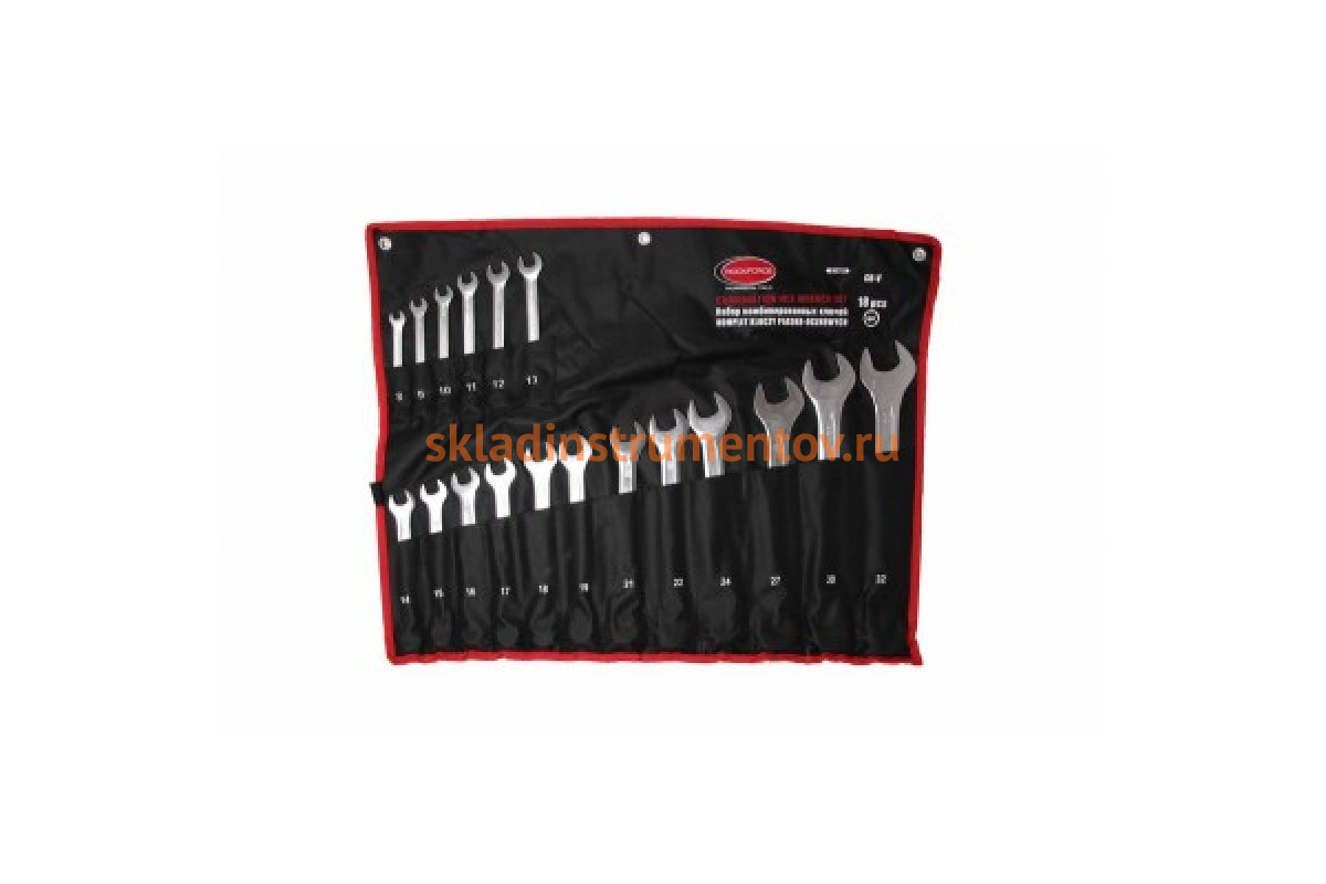 Набор ключей комбинированных 18 предметов 6 граней ROCKFORCE RF-5186H позволяет работать с крепежом с различной степенью доступности.