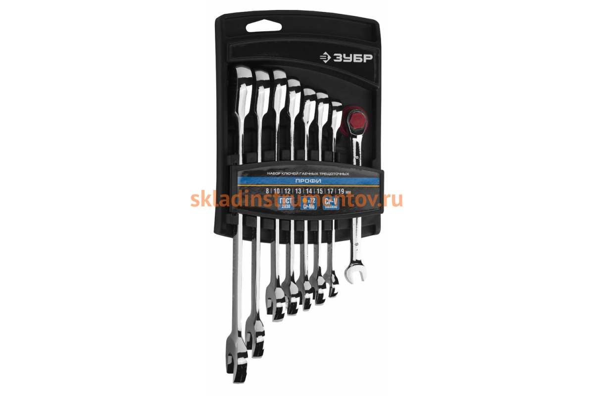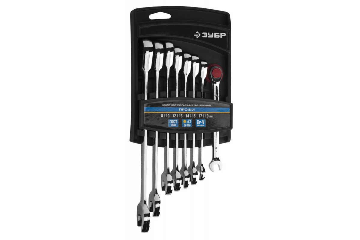 Набор комбинированных гаечных ключей трещоточных 8 шт Зубр 8 - 19 мм 27074-H8_z01 представлен в оптимальной комплектации и содержит популярный размерный ряд. Предназначен для работ с шестигранным крепежом.