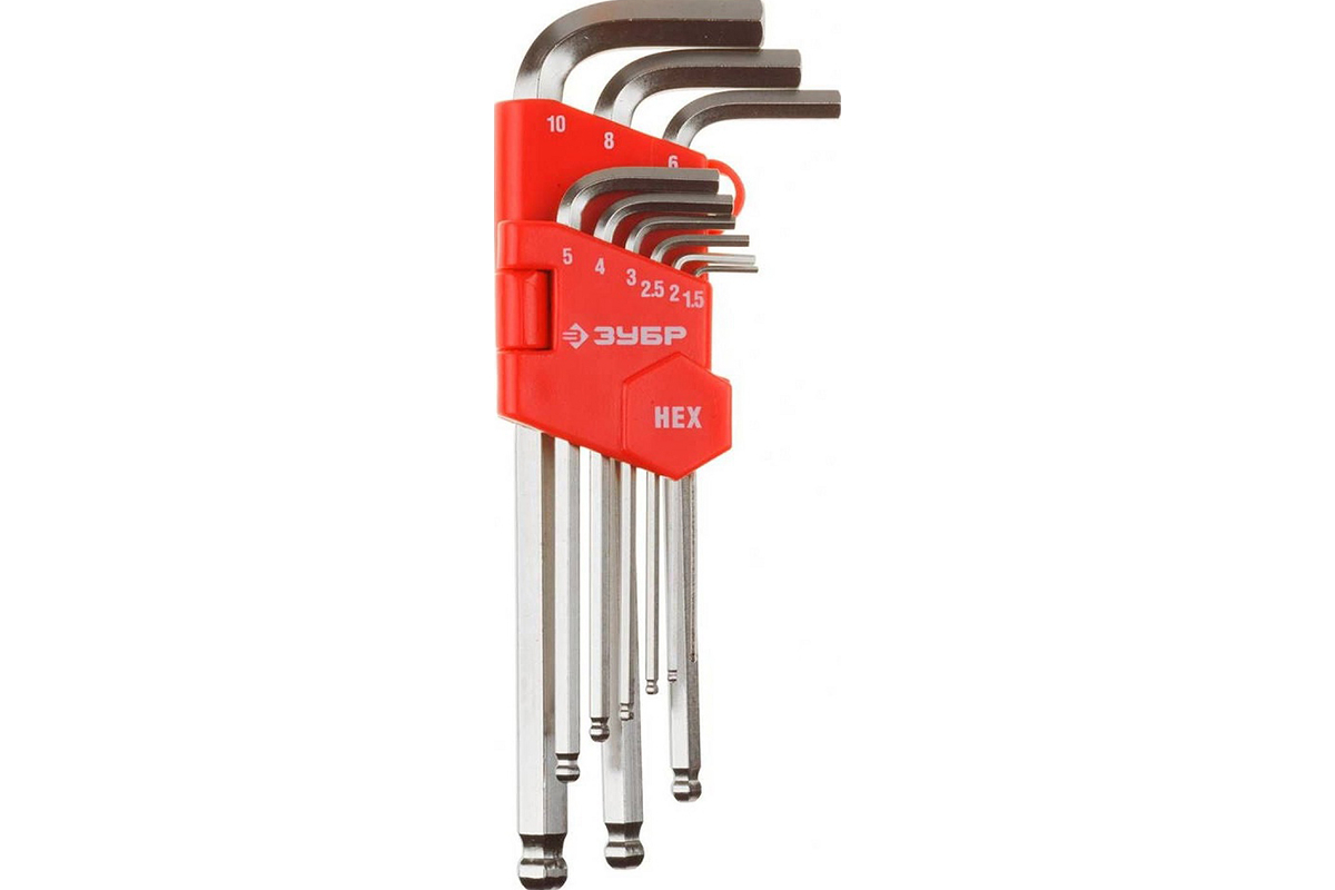 Набор ключей Зубр "Мастер" имбусовые длинные с шариком Cr-V HEX 1,5-10 мм 9 предметов 27461-2_z02