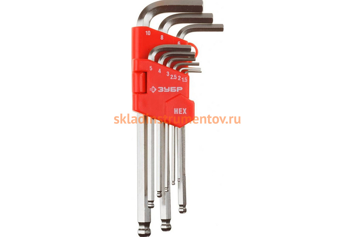 —Набор ключей Зубр "Мастер" имбусовые длинные с шариком Cr-V HEX 1,5-10 мм 9 предметов 27461-2_z02—