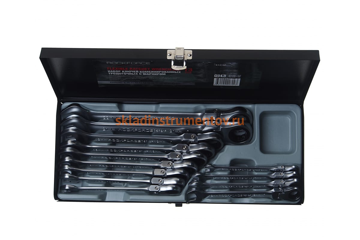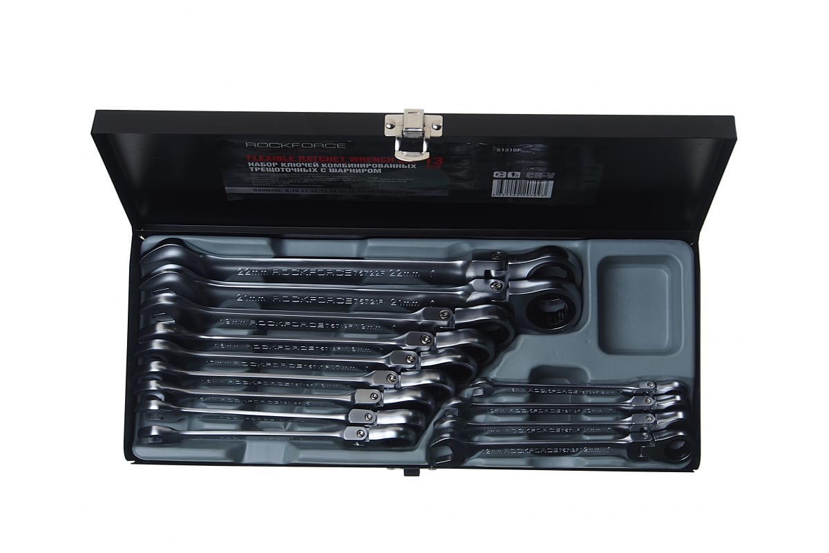 Набор комбинированных трещоточных ключей с шарниром ROCKFORCE 13пр. RF-51310F выполнен из высококачественной стали. Комплект подойдет для профессиональной эксплуатации. Инструменты отличаются устойчивостью к коррозии, перепадам температуры и влажности.