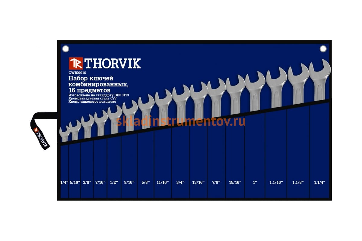 —Набор ключей гаечных комбинированных дюймовых Thorvik CWIS0016 1/4"-1-1/4" 16 предметов в сумке 52917—
