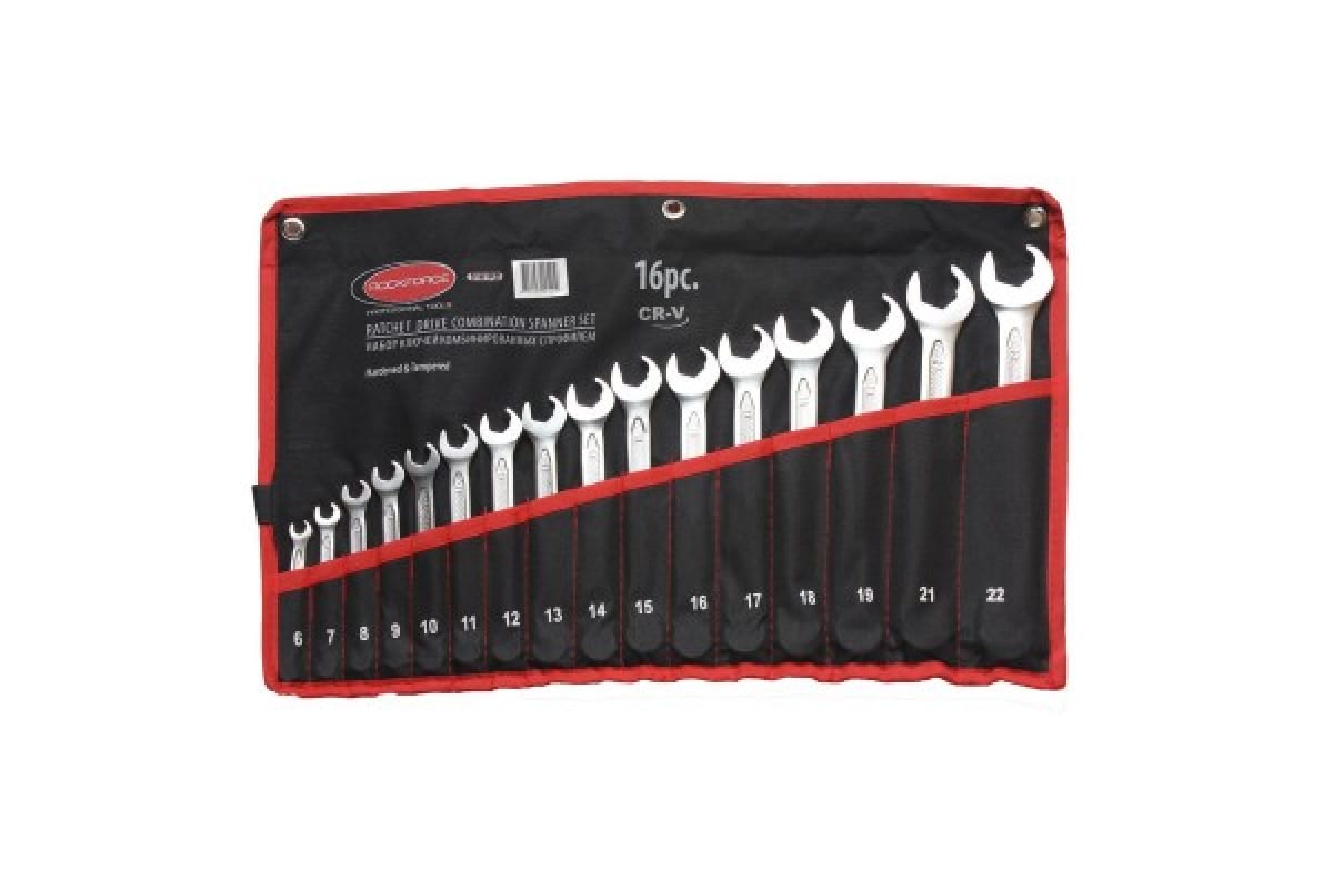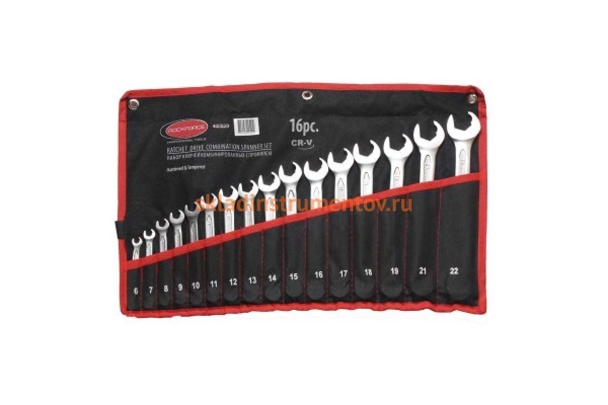 Набор ключей комбинированных с профилем Ratchet Drive-быстрый ключ, 16 предметов ROCKFORCE RF-5161RD позволяет работать с крепежом с различной степенью доступности.