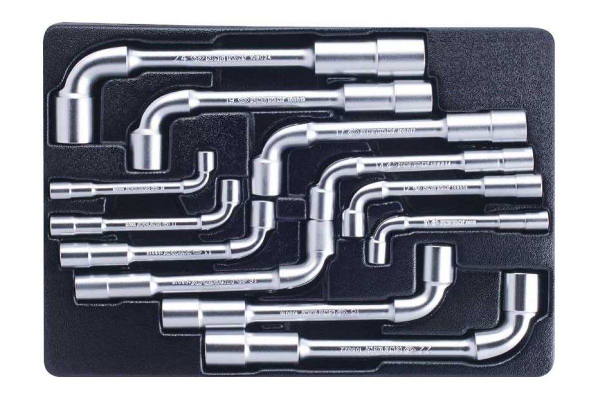 Набор торцевых L-образных ключей, ложемент 12шт KING TONY 9-1812MR используется для работы с шестигранным крепежом при сборке или демонтаже различных конструкций, механизмов и агрегатов. Особая геометрия ключей позволяет использовать их в местах с ограниченным доступом, например, в углублениях и пр. Инструменты имеют пожизненную гарантию, подходят для профессиональных работ. Каждый компонент располагается на специальном ложементе, который разработан специально для размещения в инструментальной тележке.