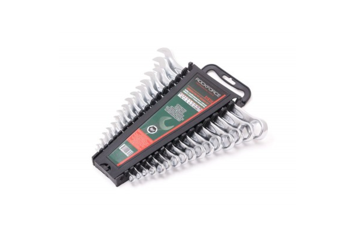 Набор ключей комбинированных 16 предметов ROCKFORCE RF-5161H позволяет работать с крепежом с различной степенью доступности.