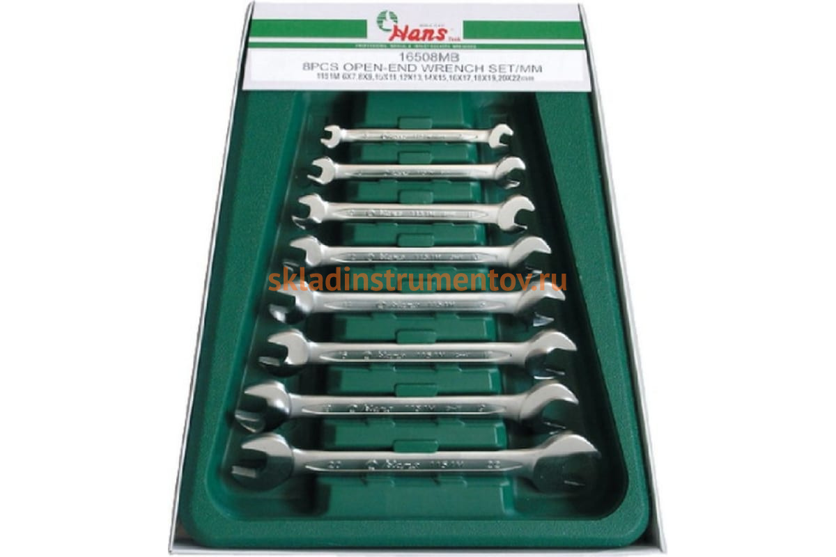 Комплект рожковых ключей 6-22мм, 8шт Hans 16508M
