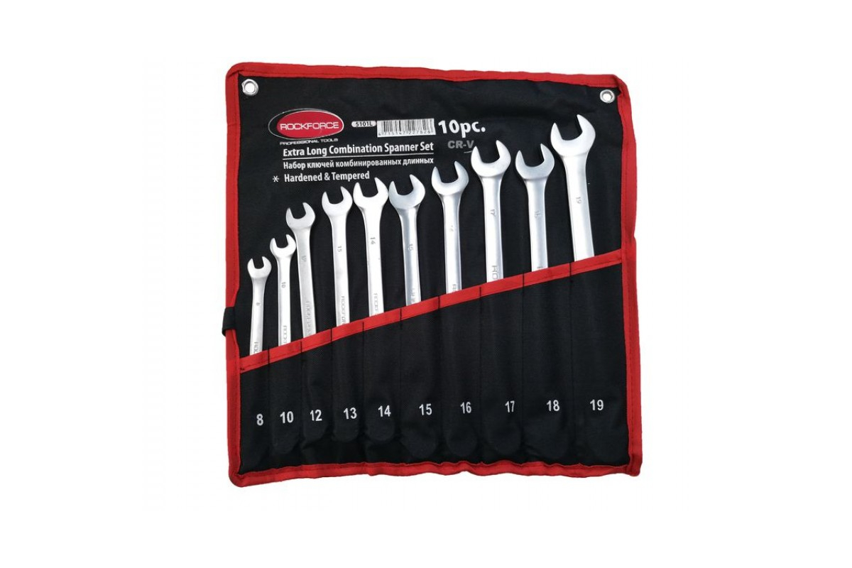 Набор комбинированных удлиненных ключей 10 предметов ROCKFORCE RF-5101L представляет собой комплект инструмента высокой прочности. Для работы с крепежом можно прикладывать значительные усилия.