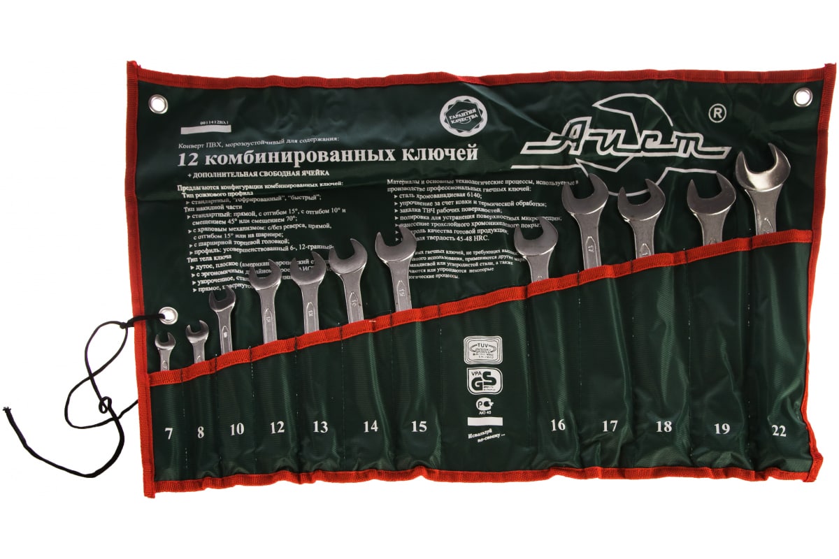 Набор ключей комбинированных 12 предметов AIST 0011412BX1-M 00-00009904 подойдет для крепежа любой сложности: