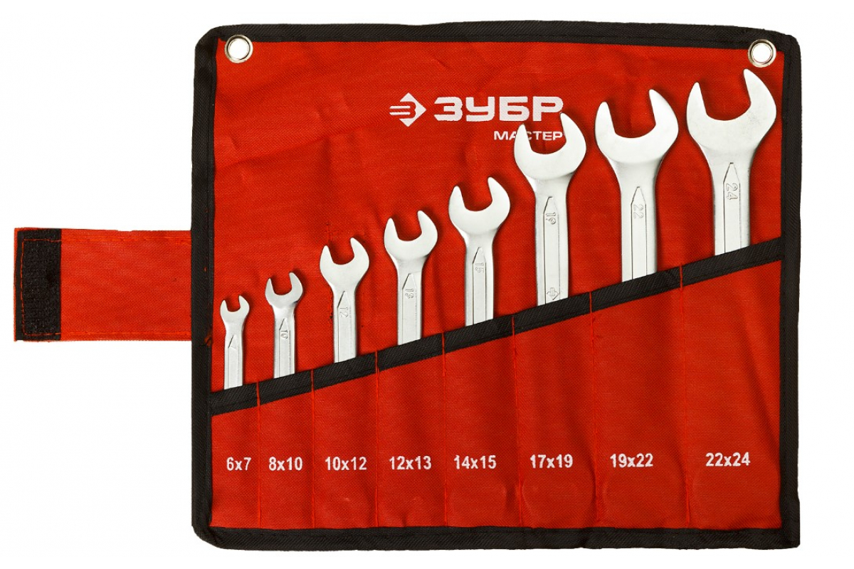 Набор рожковых гаечных ключей 8 шт 6 - 24 мм Зубр 27010-H8_z01 значительно упрощает работу с крепежом.