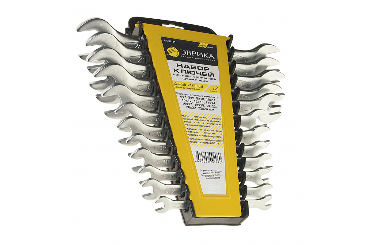 Набор рожковых ключей 6-24мм холдер 12 предметов ЭВРИКА ER-51121 удобен при работе с шестигранным крепежом с ограниченным доступом. Инструмент охватывает несколько граней болта и позволяет отвернуть его с небольшим усилием.
