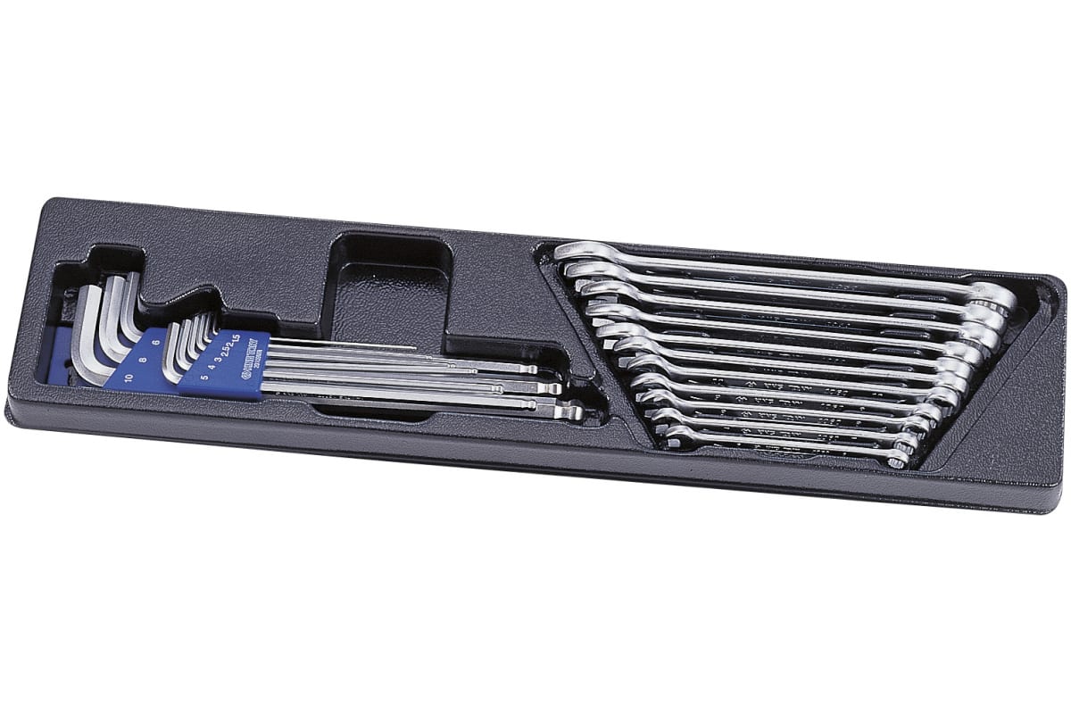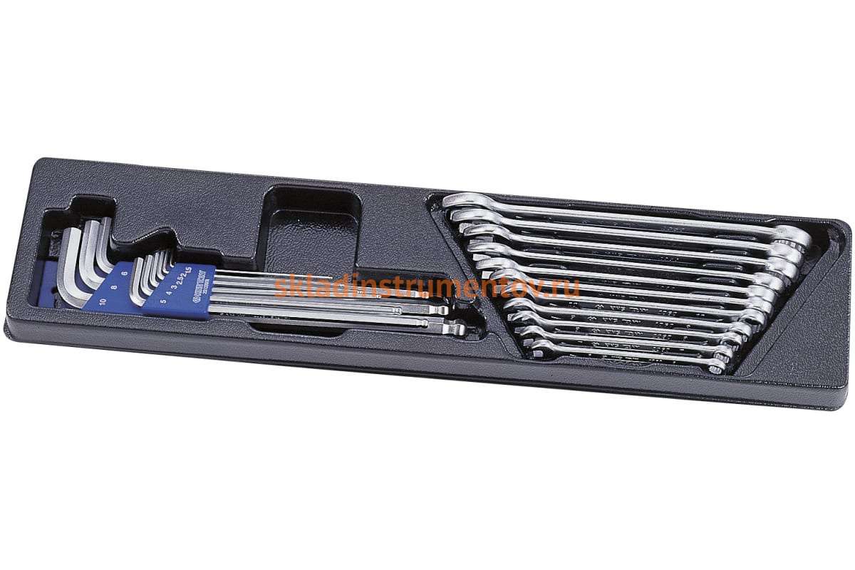 Набор комбинированных ключей и шестигранников, ложемент, 20шт KING TONY 9-90120MR служит для эффективного выполнения крепежных работ при монтаже/демонтаже различных механизмов, агрегатов, конструкций и пр. Комплект предназначен для размещения в инструментальном раскладном ящике МАСТАК серии 510-05420 и удобного оформления персонального рабочего места для мастера.