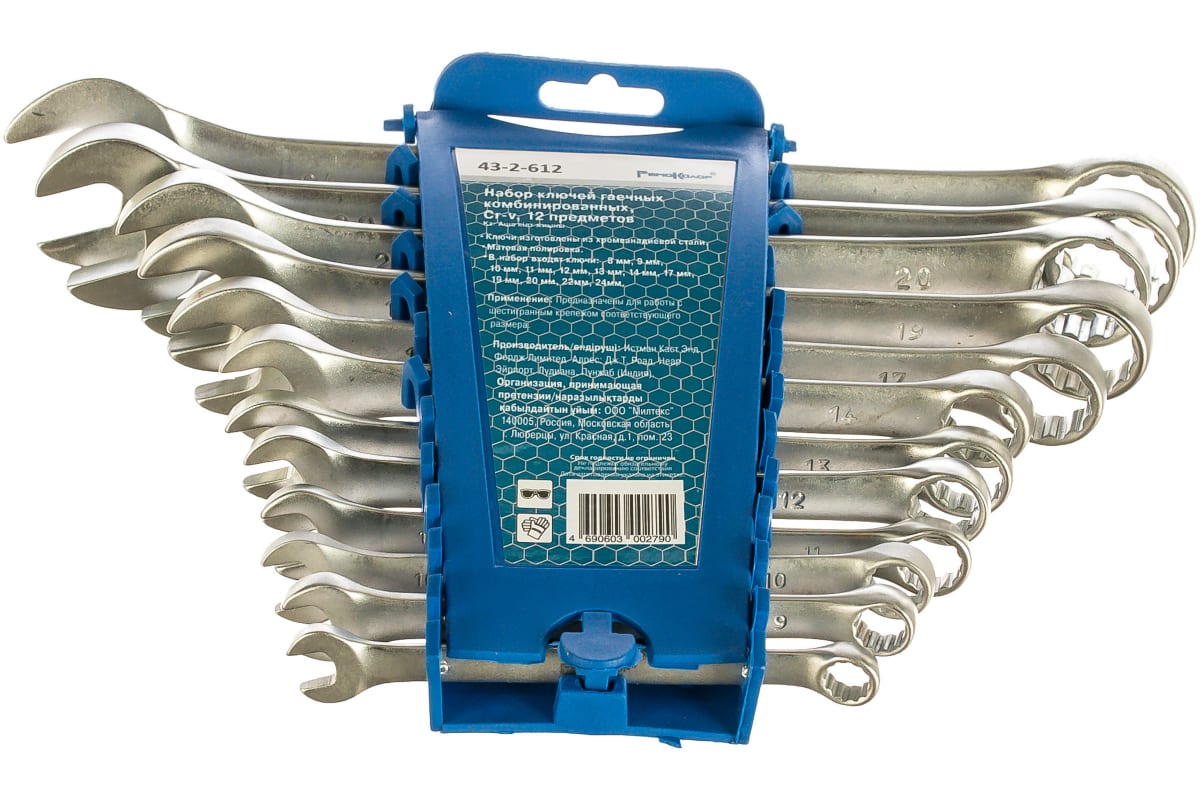 Набор гаечных комбинированных ключей РемоКолор Cr-v, матовая полировка, 12 предметов 43-2-612 пригодится в автомастерской, гараже, на ремонтно-строительной площадке.