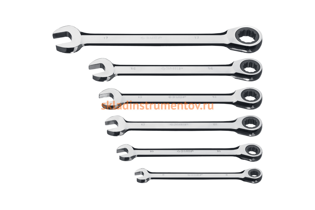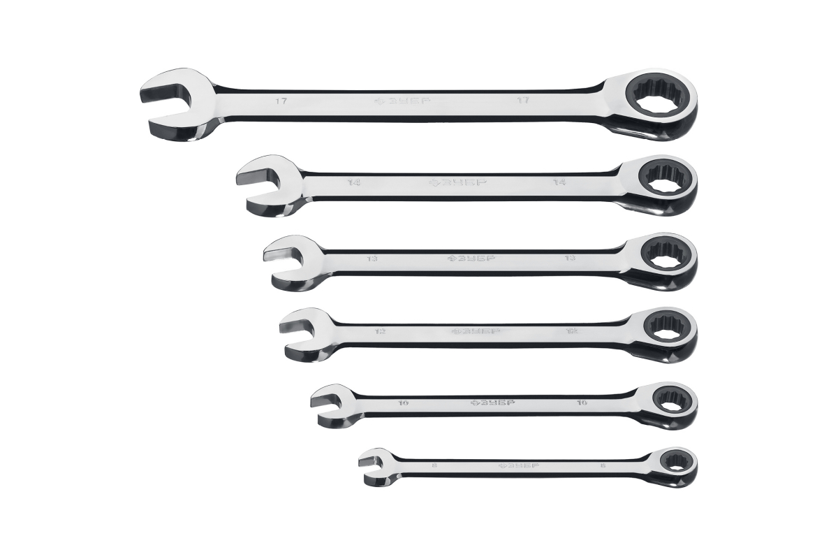 Набор комбинированных гаечных ключей трещоточных 6 шт 8 - 17 мм Зубр 27074-H6_z01 значительно упрощает работу с крепежом.