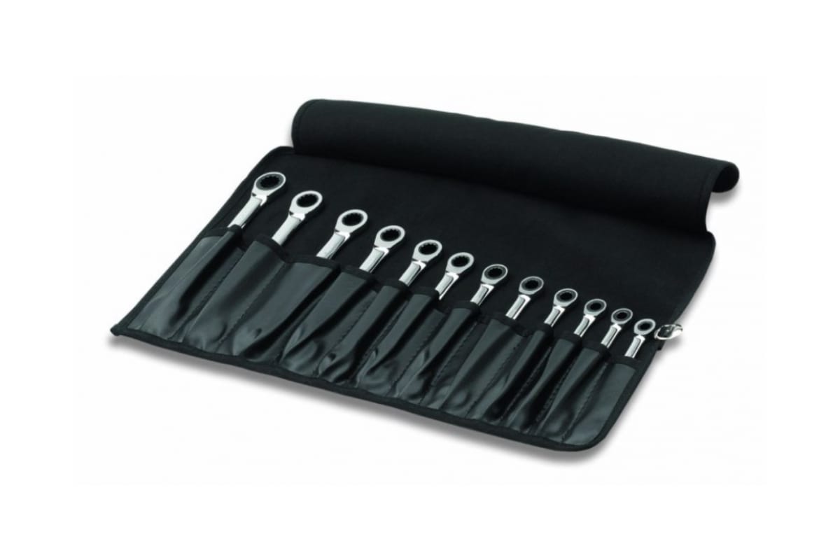 Набор CIMCO 11 2505 состоит из комбинированных рожково-накидных ключей с трещоткой 8-19 мм. Большинство мастеров предпочитает использовать именно такие, так как на одном конце инструмента расположен зев рожкового ключа, а на другом - головка накидного. Наличие трещотки позволяет производить полезное вращение торцевой головки только в одном направлении, обеспечивая холостой обратный ход. Ключи соответствуют немецкому промышленному стандарту DIN3113A и международному стандарту ISO 3318. Выполнены из хром-ванадиевой стали и покрыты глянцевым хромом, благодаря чему обеспечивается отличная износостойкость и защита от коррозии.