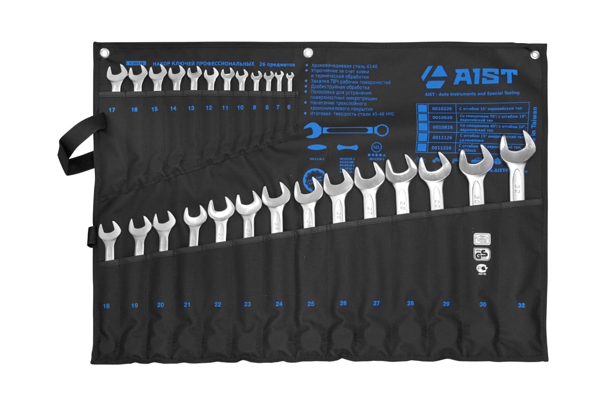 Набор ключей комбинированных 26 предметов AIST 0010226A 00-00004718 обладает высокой прочностью и надежной защитой от коррозии. Инструмент подойдет для крепежа с различной степенью доступности.