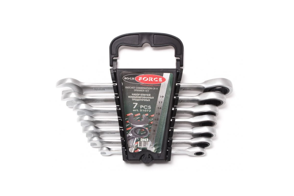 Набор комбинированных трещоточных ключей ROCKFORCE 8-19мм 7 предметов RF-51072 представляет собой комплект инструмента высокой прочности. Для работы с крепежом можно прикладывать значительные усилия.
