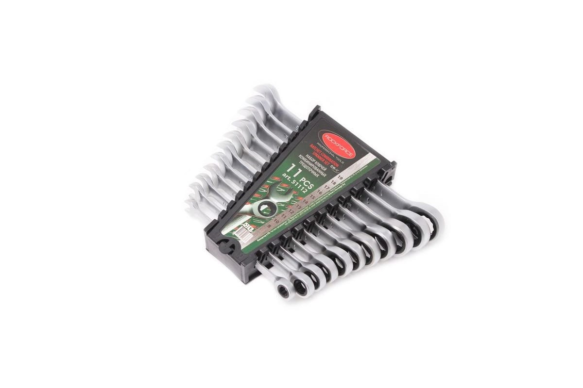 Набор ключей комбинированных трещоточных ROCKFORCE 8-19мм RF-51112 представляет собой комплект инструмента высокой прочности. Для работы с крепежом можно прикладывать значительные усилия.