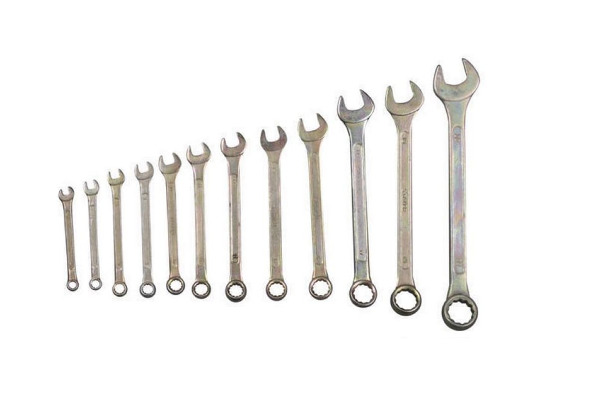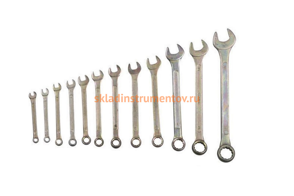 Набор комбинированных ключей STAYER ТЕХНО 27090-H12 включает в себя 12 комбинированных оцинкованных ключей, изготовленных из стали С45. Ключи имеют двенадцатигранный профиль с одной из сторон, что увеличивает число рабочих положений. Вес набора составляет 0.75 кг.