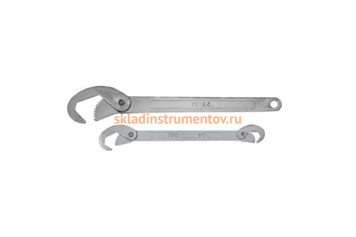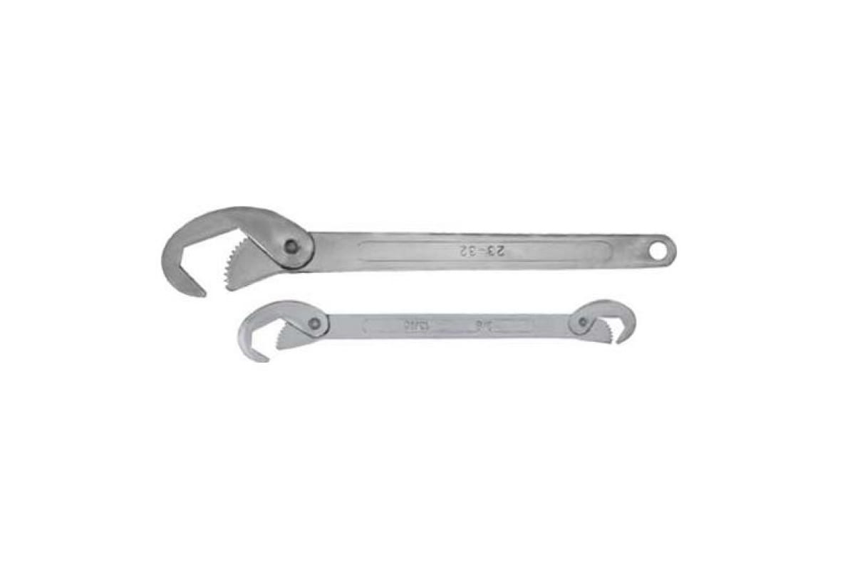 Набор универсальных ключей 2 шт Контрфорс 136622 используется для выполнения работ с резьбовыми соединениями различных размеров. Зубчатые рабочие поверхности обеспечивают прочный и уверенный обхват крепежных элементов. Набор включает в себя два предмета, удобных в использовании и обладающих высокой прочностью. Один из ключей является двусторонним, а на другом в хвостовой части ручки предусмотрено отверстие для подвеса.
