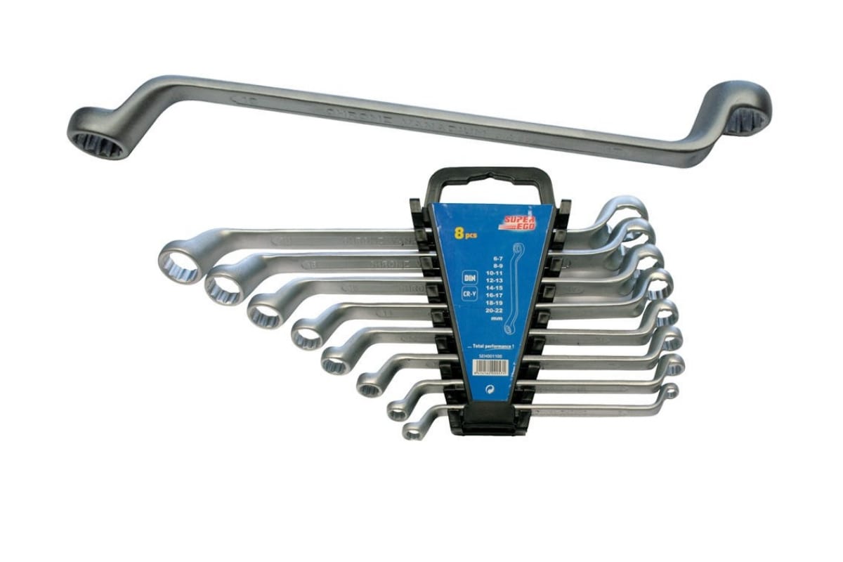 Набор изогнутых накидных ключей 6-22мм, 8шт SUPER-EGO SEH001100 - комплект гаечных ключей с закрытыми (кольцевыми) зевами, который станет прекрасным помощником в слесарной мастерской, в области сантехнических работ.