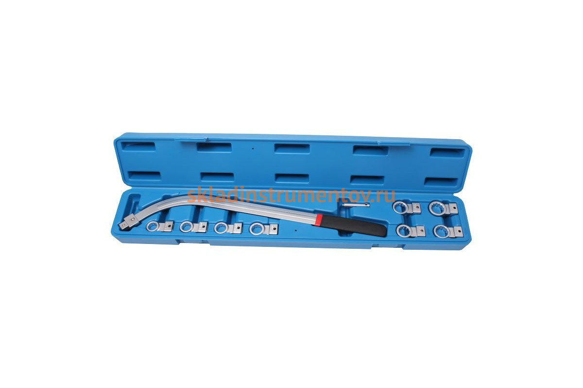 Накидной удлиненный изогнутый ключ в наборе со сменными насадками 10 предметов ROCKFORCE RF-40131510 позволяет работать с автомобилями. Увеличенная длина рукоятки и специальный изгиб существенно упрощают доступ к крепежу.