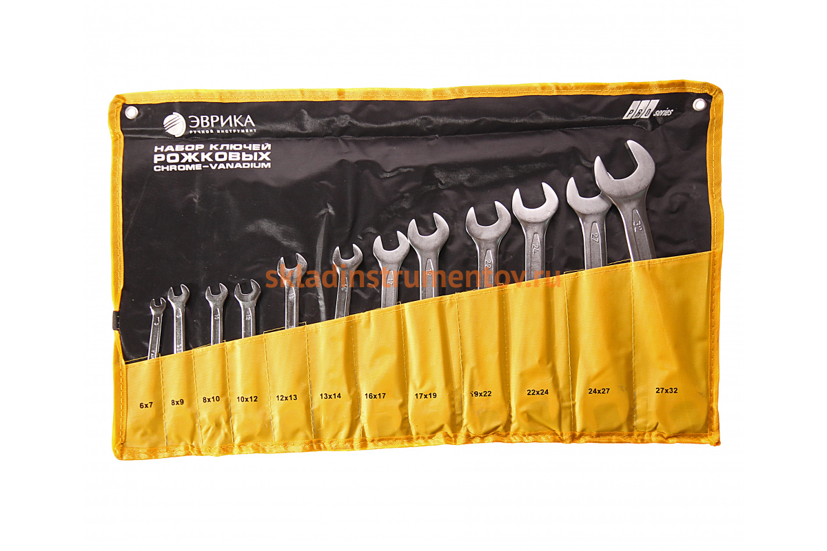 Набор рожковых ключей 6-32мм планшет 12 предметов ЭВРИКА ER-51120 удобен при работе с шестигранным крепежом с ограниченным доступом.