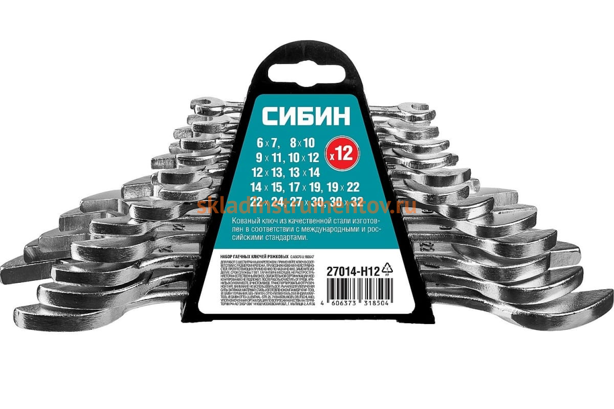 Набор гаечных ключей СИБИН 12 шт, 6 - 32 мм 27014-H12
