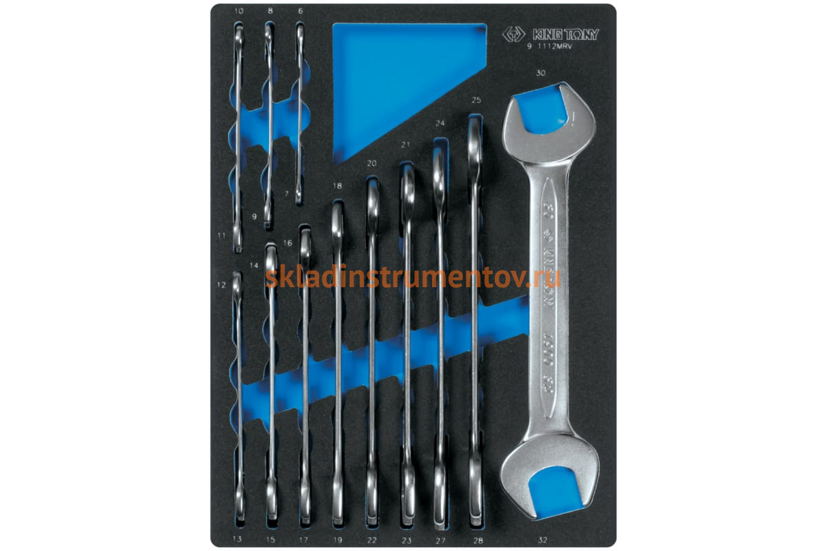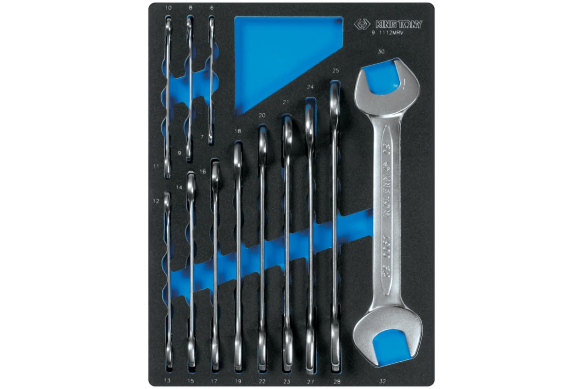 Набор рожковых ключей, ложемент, 12 предметов KING TONY 9-1112MRV представлен в оптимальной комплектации с широким размерным рядом. Предназначен для работ с резьбовыми соединениями.