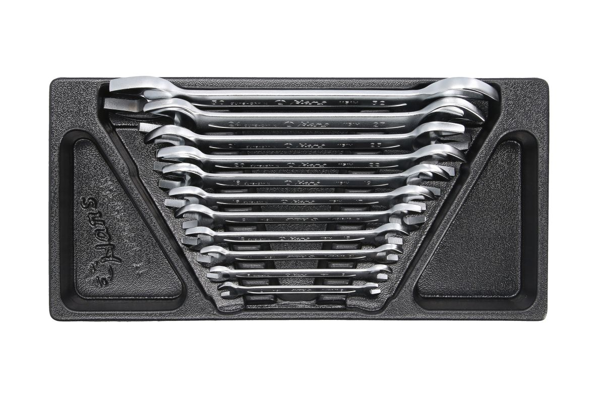 Рожковые ключи Hans 11 предметов, ложемент TT-35 используется при проведении слесарно-монтажных работ. Инструменты являются двухсторонними и включают в себя рожковый профиль.
