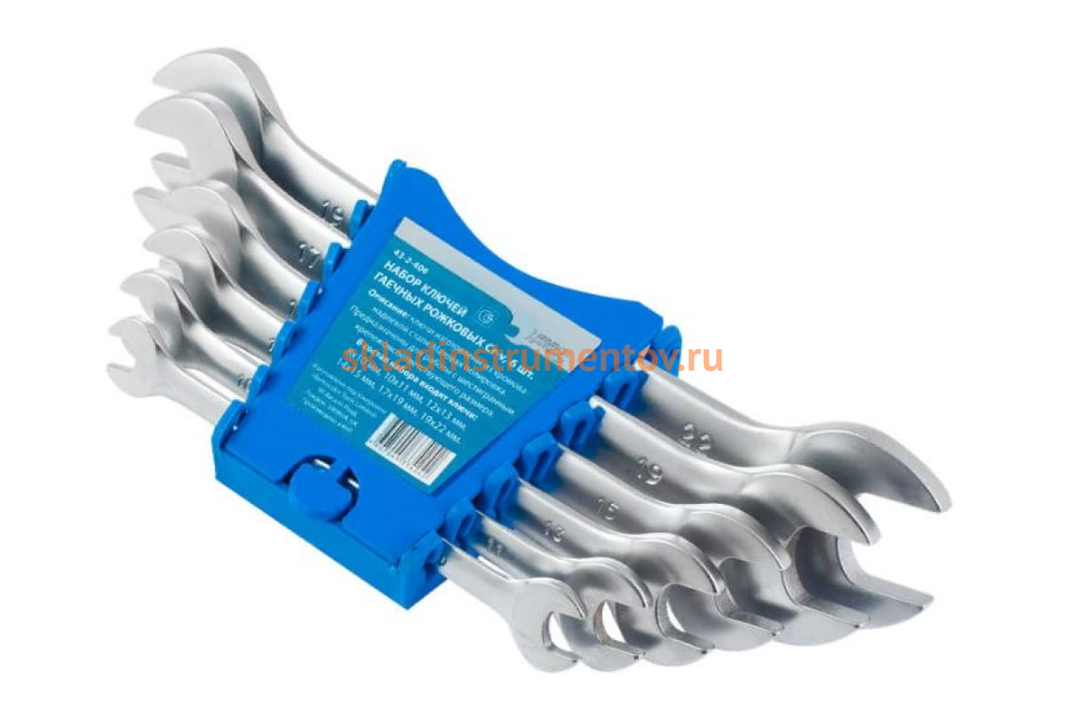 Набор гаечных рожковых ключей РемоКолор Cr-v, матовая полировка, 6 предметов 43-2-406 предназначен для обслуживания резьбовых элементов с шестигранными головками различных размеров.