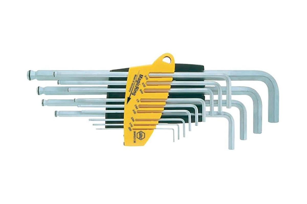 Набор шестигранных ключей со сферической головкой MagicRing 13шт Wiha ProStar SB369R SZ13 24850 представляет собой комплект профессионального ручного инструмента для работы с крепежными соединениями. Ключи подходят для работы с винтами, имеющими внутренний профиль в виде шестигранника. Набор является идеальным вариантом для использования в труднодоступных местах за счет сферических наконечников. Каждый компонент надежно зафиксирован в специальном футляре, что снижает риск утери изделий.