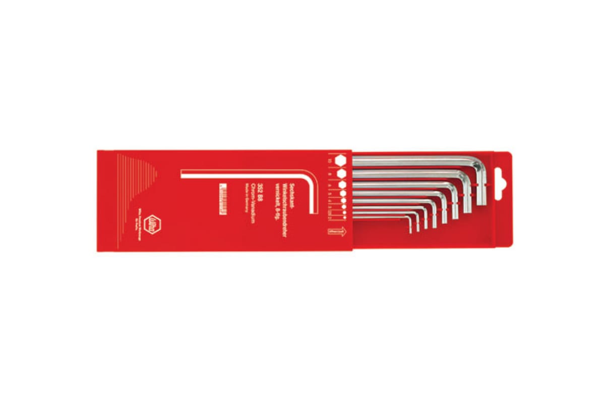 Набор ключей 6-тигранных коротких 351 B8, 8 предметов Wiha 01166 поставляется в выдвижной коробке, что исключает возможность утери составляющих при транспортировке. Ключи используются для монтажа и демонтажа винтов с внутренним шестигранником. Корпус инструментов изготовлен из хромванадиевой стали, которая прошла полную закалку и имеет никелированное блестящее покрытие.