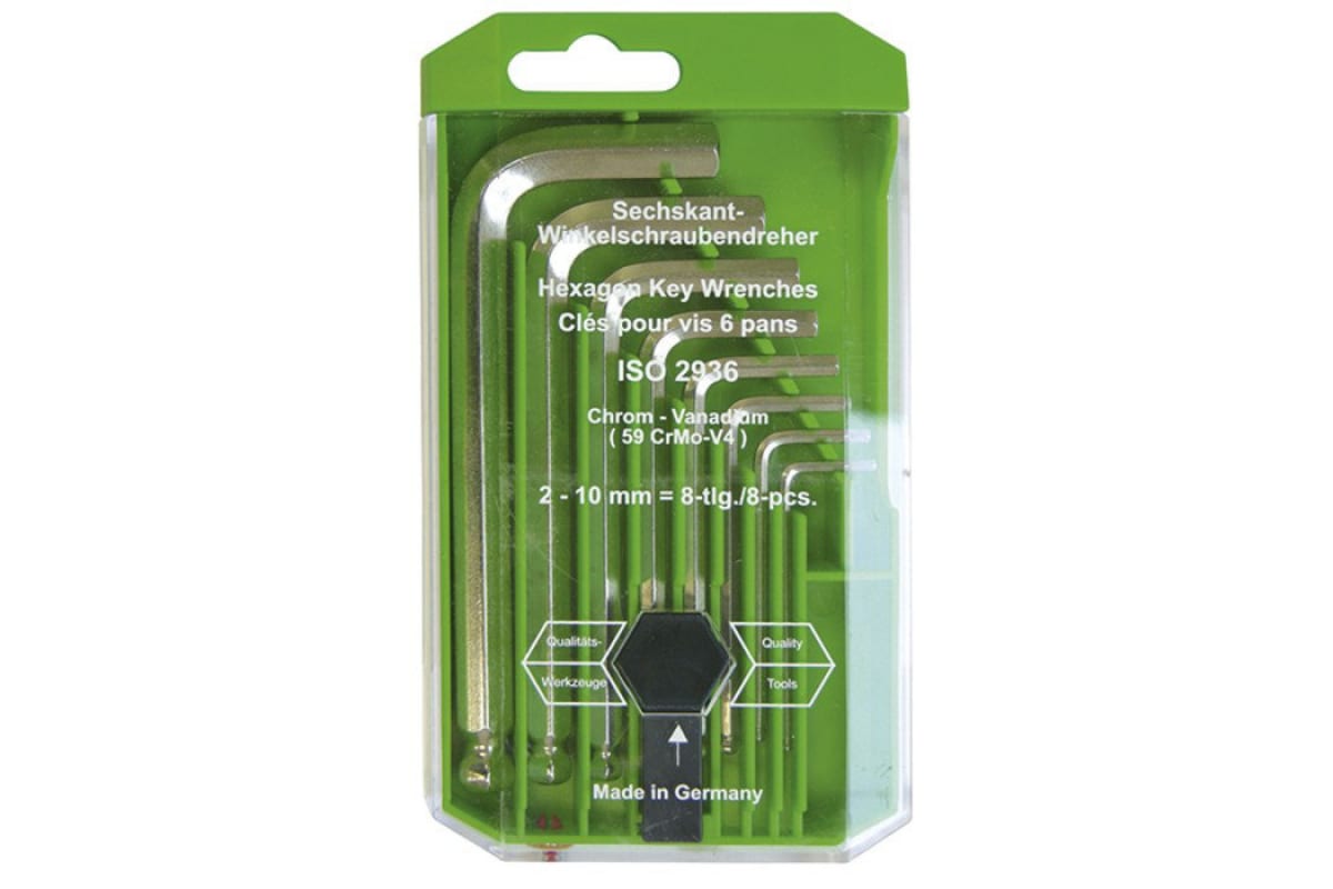 Набор шестигранных штифтовых ключей со сферической головкой 8шт HAUPA 100915 - комплект высокопрочных и коррозионностойких угловых ключей для работы с шестигранными винтами от самых мелких размеров (2 мм) до крупных (1 см).