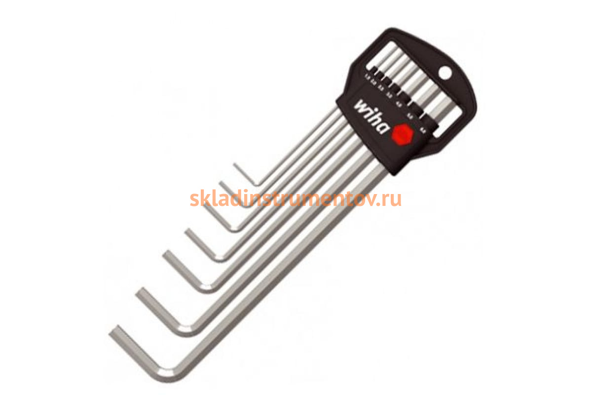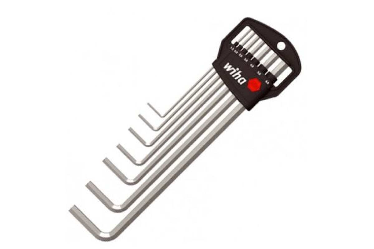 Набор ключей 6-тигранных Classic 352 H7, 7 предметов Wiha 01220 применяется для монтажа и демонтажа винтов с внутренним шестигранником. Набор из семи шестигранных штифтовых ключей поставляется на удобном и компактном держателе. Инструмент изготовлен из хромванадиевой стали, которая прошла полную закалку для увеличения твердости. Блестящее никелирование поверхности ключей увеличивает их износостойкость.