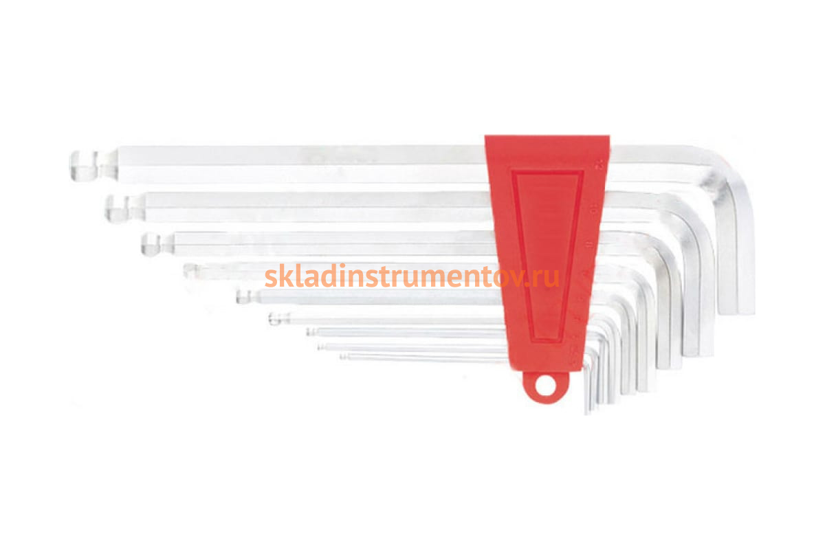 Набор ключей имбусовых STELS CrV 9 шт экстра-длинные c шаром 16411 обладает пластиковой клипсой для хранения и транспортировки. Комплект из 9 ключей с шаром вместо наконечника изготовлен из хромованадиевой стали. Ключи имеют Г-образную форму.