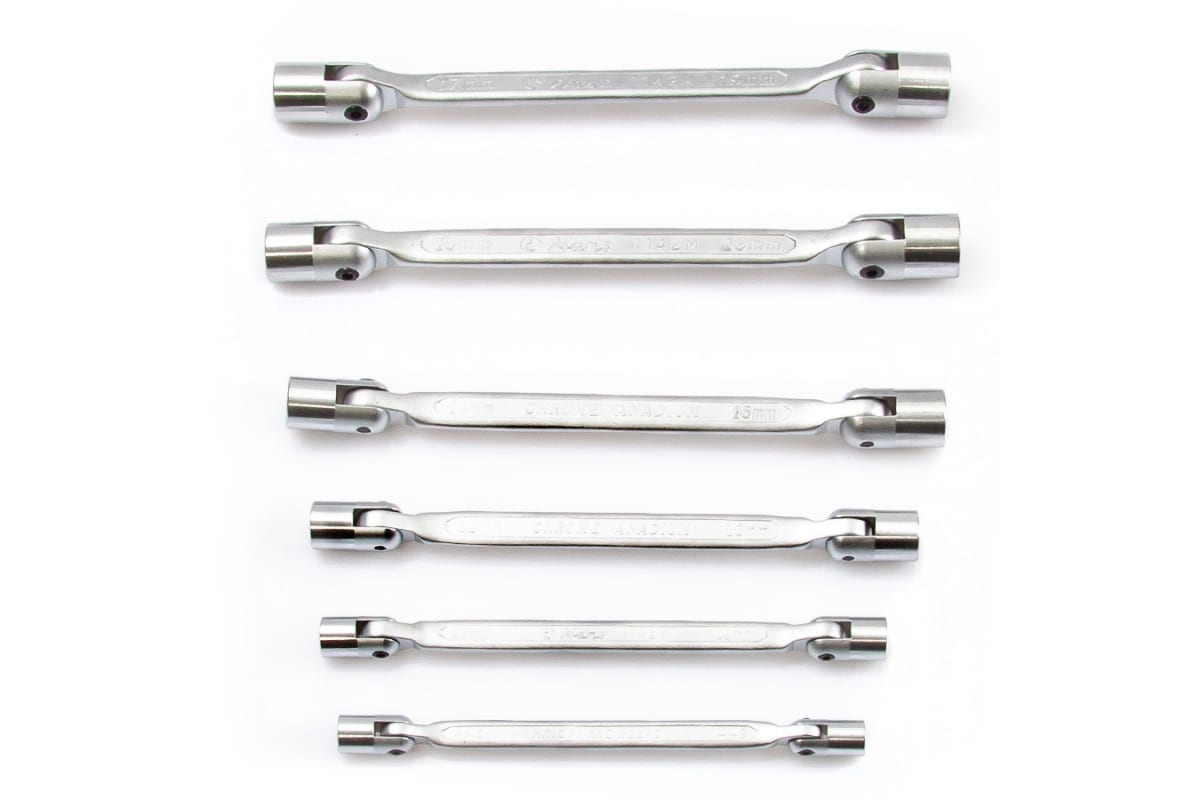 Комплект торцевых ключей Hans 8-19мм, 6 шт 16406M поставляется в чехле с разметкой размеров инструментов. Набор предназначен для работы с винтами, их монтажа и демонтажа. Корпус изделий изготовлен из хромованадиевой стали, стойкой к возникновению коррозии. Инструмент имеет с двух сторон торцевые головки.