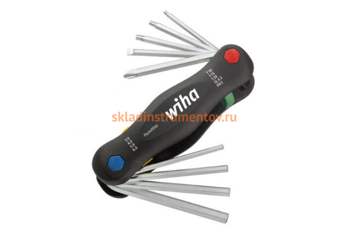 Набор шестигранных ключей TORX и отверток 9шт Wiha PocketStar 351 PG9X 25293 включает в себя инструменты распространенных размеров для выполнения крепежных работ. Данная модель сочетает ключи и отвертки для винтов с внутренним шестигранником, прямым шлицем, Phillips и TORX ®. Комплект подходит как для профессионального использования, так и для домашних условий. В сложенном виде инструмент не занимает много места, его удобно хранить и носить с собой в случае необходимости.