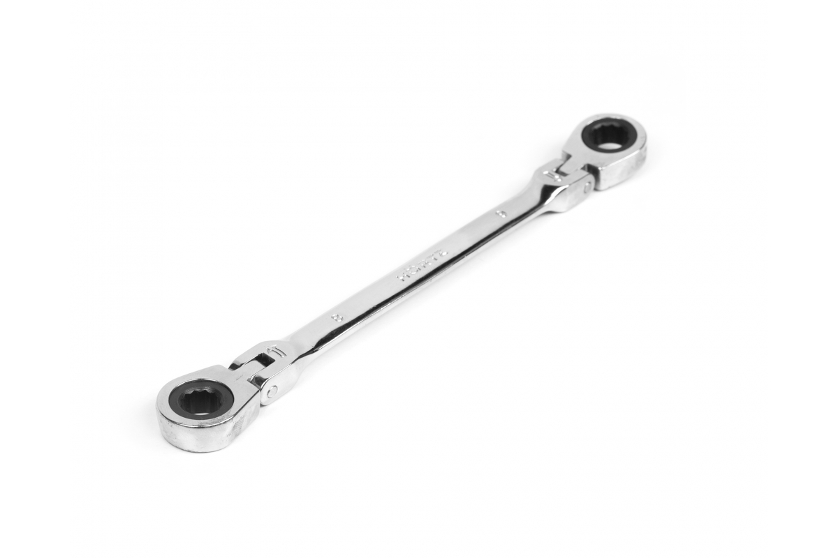 Благодаря наличию шарнира и трещотки ключ легко подходит даже к труднодоступному крепежу.
