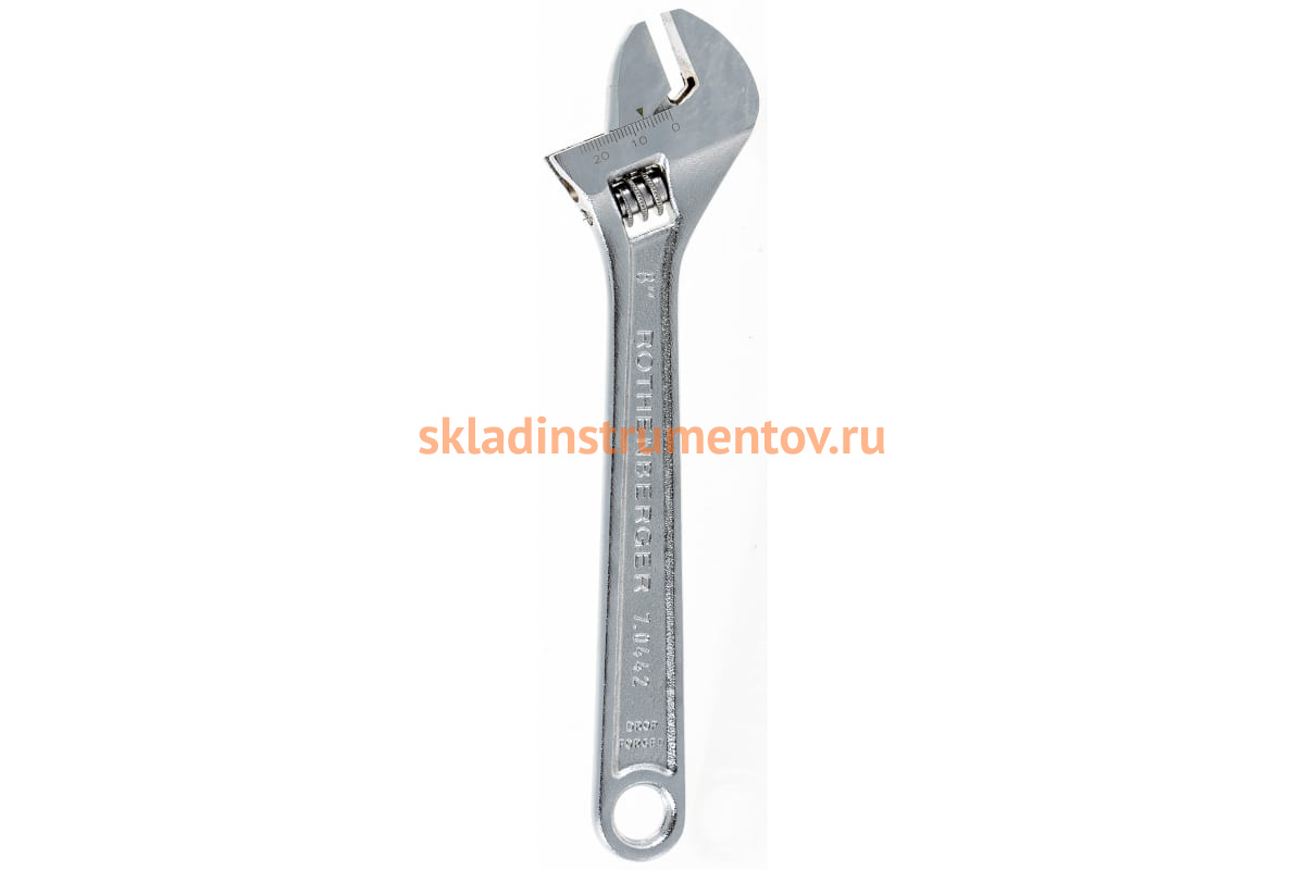 Разводной ключ 8", 25мм Rothenberger 70442 - прочный и надежный ручной инструмент для работы с крепежными элементами различных размеров. Ключ легко регулируется под нужный размер болта или гайки при помощи ролика с правым ходом.