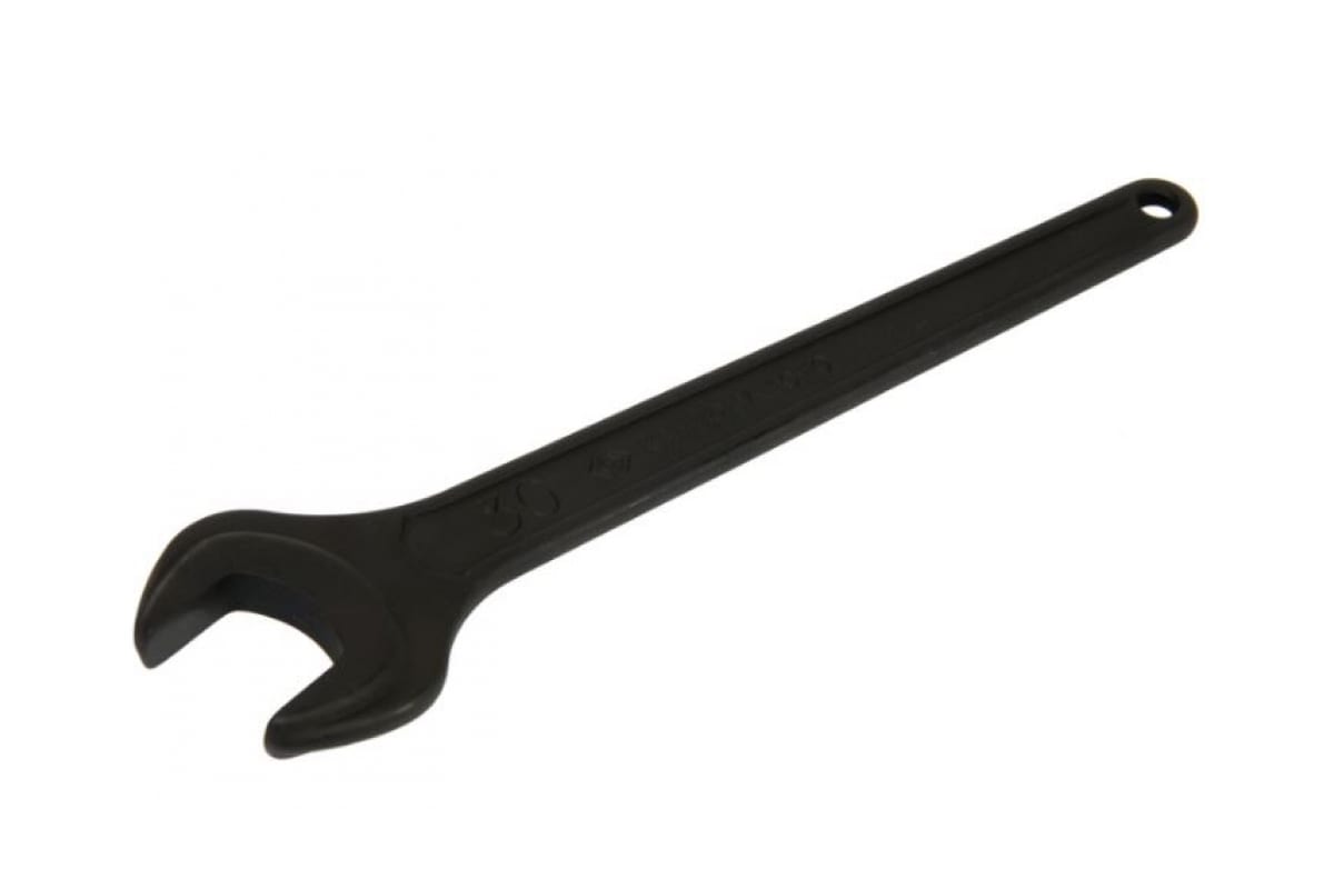 Рожковый силовой ключ KING TONY 30 мм 10F0-30P необходим для монтажа и демонтажа резьбовых соединений под большими нагрузками. Он изготовлен из инструментальной углеродистой стали специального сплава, благодаря чему срок его службы выше. Фосфатированное покрытие защищает от коррозии и придает матовый оттенок черного цвета. Модель соответствует стандарту DIN 894.