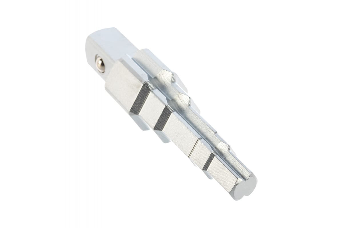 Ступенчатый ключ CIMCO 11 4000 изготовлен для внутренних шестигранных и двенадцатигранных кулачковых разъемов. Имеет посадку для трещотки размером 1/2". Благодаря конструкции ключа работа происходит без перекоса радиаторных ниппелей и коротких крановых удлинителей. Соединения размером - 3/8 - 1/2 - 3/4 - 1".