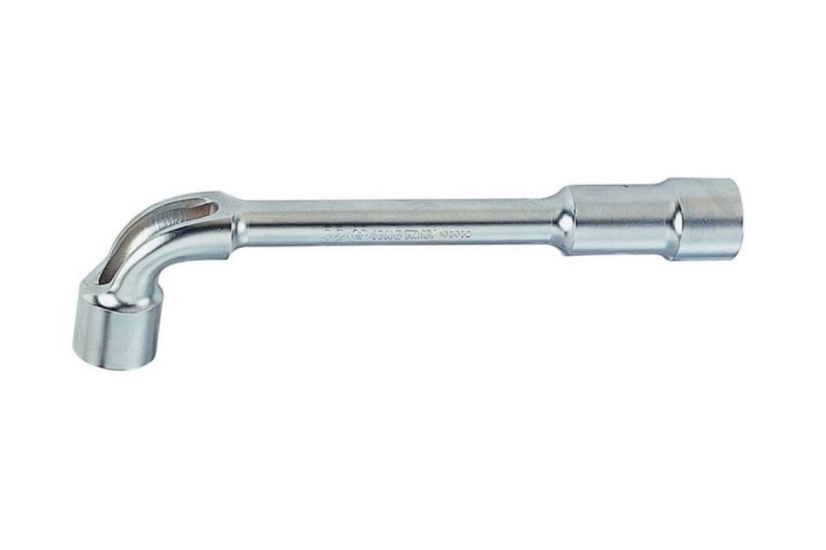 Г-образный торцевой ключ 17 мм KING TONY 1080-17 служит для сборки и ремонта автомобилей, мотоциклов и прочих транспортных средств. Назначение инструмента - обслуживание крепежных узлов в углублениях, шпилек. Короткая часть ключа оканчивается двенадцатигранным наконечником диаметром 24 мм и глубиной 18 мм, длинная - шестигранным наконечником глубиной 56 мм.