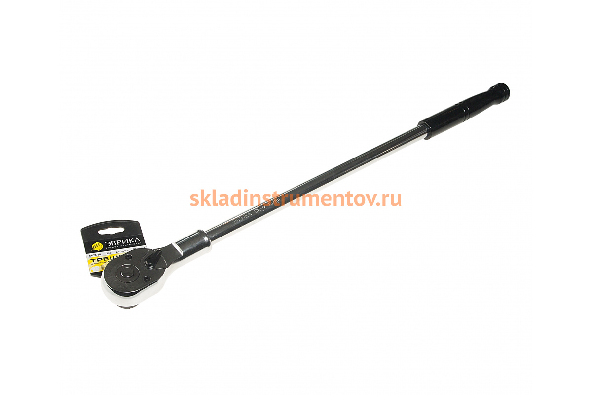 Трещотка с прямой металлической ручкой ЭВРИКА 3/4 24-зубцовая 760мм ER-13760 представляет собой удобный инструмент для монтажа и демонтажа крепежных элементов различного вида.
