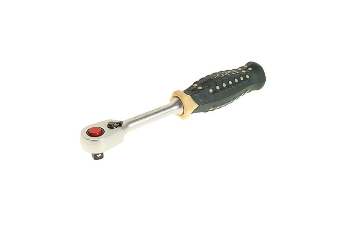 Инструмент обладает высокой прочностью. Храповик обеспечивает поворот трещотки на небольшой угол для работы в тесноте.