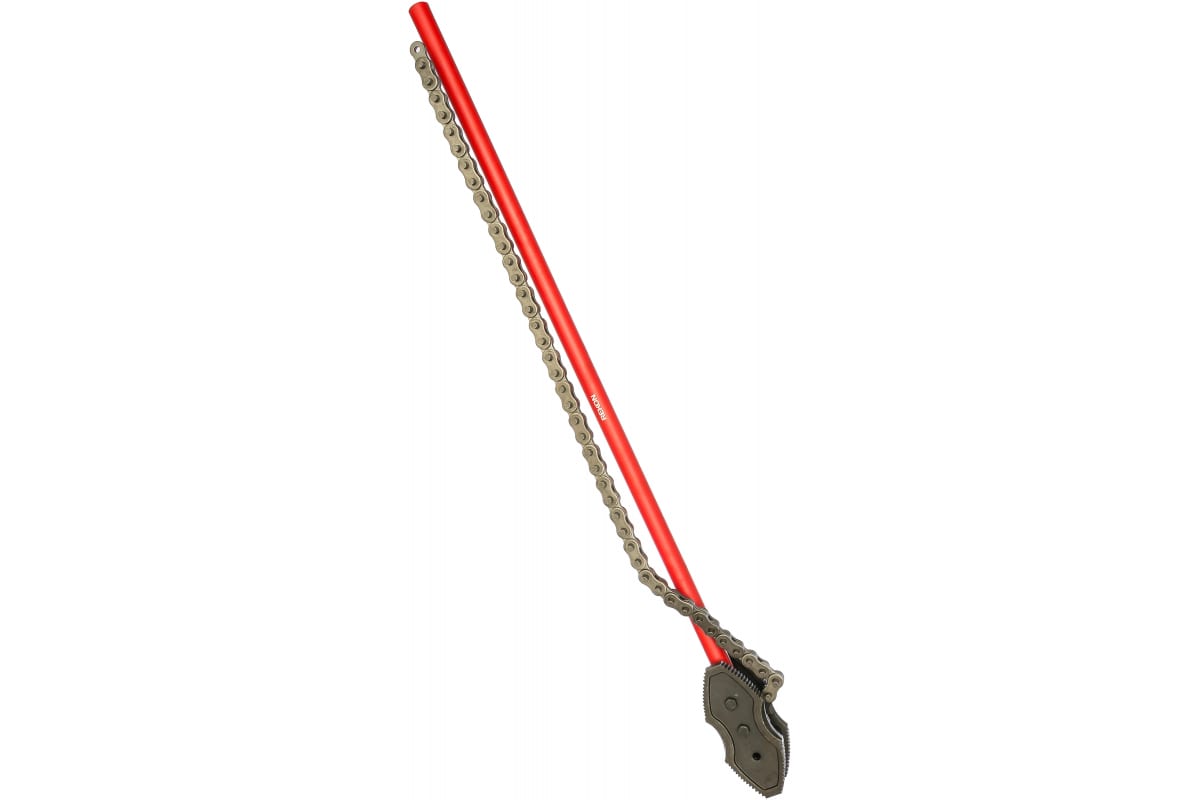 Двуконцевой двусторонний цепной трубный ключ REKON до 10" 029010 предназначен для работы с трубами диаметром до 250 мм. Он используется при протягивании нефтепроводов, проведении буровых работ и т.д. Ключ состоит из длинной литой рукоятки и кованых зажимных губок, обладающих повышенной прочностью. Плоскозвенная цепь из специальной стали имеет улучшенную термообработку.